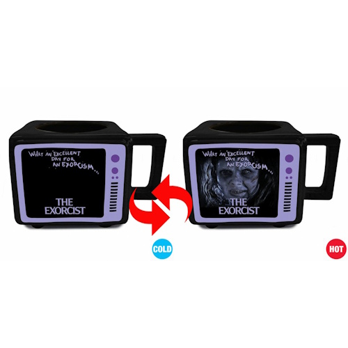 Entrez dans l’atmosphère glaçante du film culte L’Exorciste avec cette tasse thermoréactive officielle de 500 ml au design saisissant. À froid, l’écran affiche une image sobre accompagnée d’un message inquiétant. Puis, dès que vous versez une boisson chaude, le visage terrifiant apparaît progressivement, comme surgissant de l’ombre. Ainsi, chaque café devient une scène d’horreur miniature directement sur votre table. L’effet visuel captive immédiatement et plonge l’utilisateur dans une ambiance sombre et iconique.